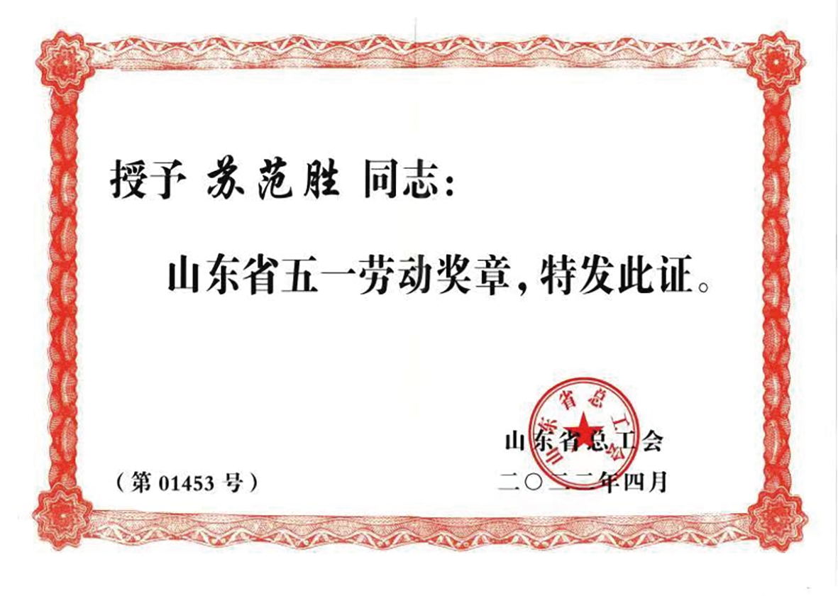 ■2022-05-24 我公司總工助理蘇范勝榮獲“山東省五一勞動獎?wù)隆睒s譽(yù)稱號