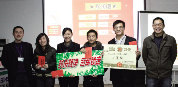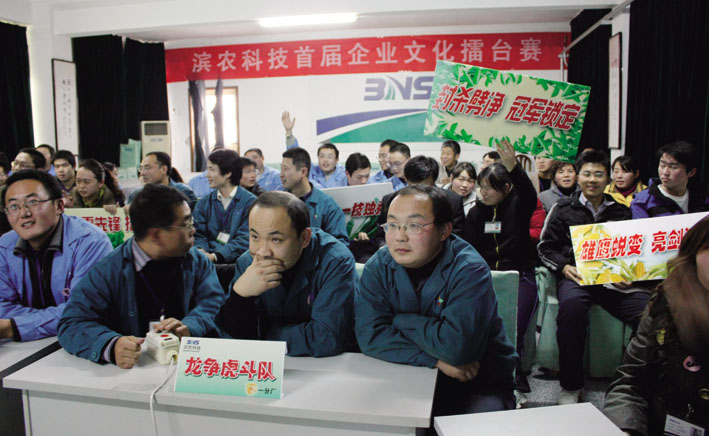 2009年12月10日下午,濱農(nóng)科技首屆企業(yè)文化擂臺賽圓滿落下帷幕。本次擂臺賽的主要目的是促進企業(yè)文化理念及行為知識內(nèi)化,加強員工學習企業(yè)文化的主動性積極性。主要出題范圍是企業(yè)文化手冊全部內(nèi)容以及部分安全、產(chǎn)品知識,貼近企業(yè)實際。以企業(yè)文化培訓考評小組為單位,比賽共分成七支代表隊,每隊有三名選手和五名親友團隊員組成。整場比賽分必答題、搶答題、風險題三個環(huán)節(jié),還為現(xiàn)場觀眾設(shè)置了觀眾題。公司總經(jīng)理助理任立巖擔任總裁判。