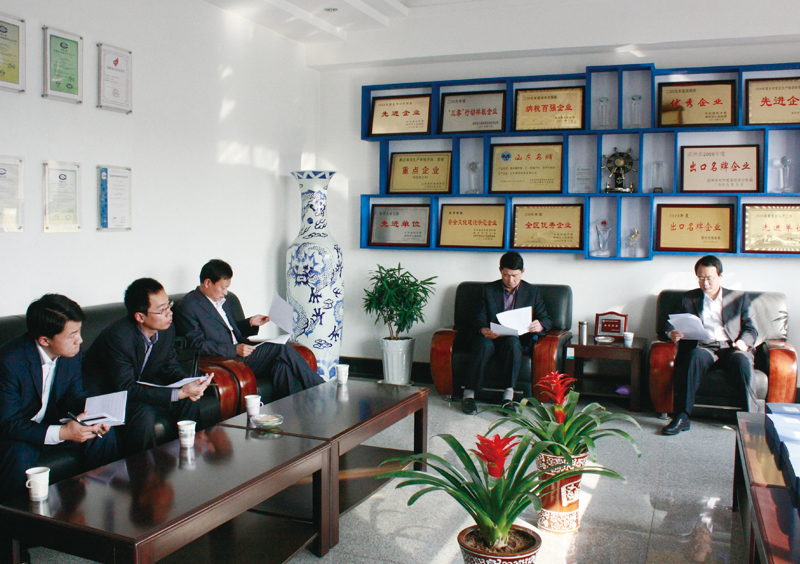 2010年11月5日,濱州市人才辦工作組人保局副局長董洪喜、市委組織部人才辦主任盧惠民等領導,在區(qū)委常委組織部部長李榮舜等領導的陪同下來我公司視察人才建設工作。公司副總經(jīng)理李華熱情接待,就公司的人才經(jīng)營理念及實踐經(jīng)驗做了詳細交流匯報。工作組一行認真聽取了李總的匯報后,對我公司工人技師、后備干部等選拔培養(yǎng)辦法給予充分肯定和高度贊揚。